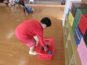 丸めてかごに入れるスポーツです。(使用した靴下は、もちろん洗濯済みの清潔な
