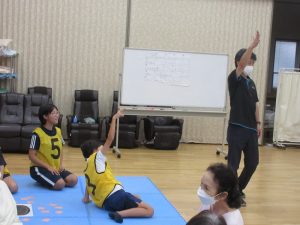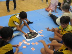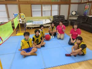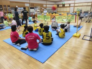 9月27日(土)に、宇久地区福祉推進協議会主催のニュースポーツ交流会に、宇久児童センターから5名のお友達と一緒に参加しました。
