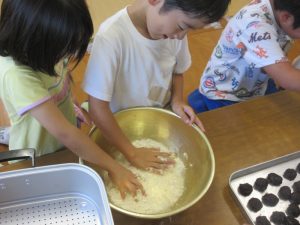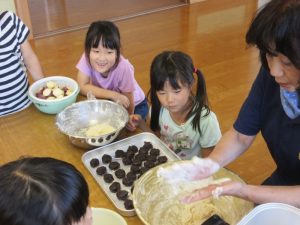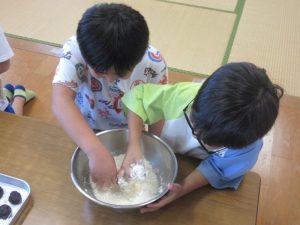 ホットケーキミックス粉を混ぜるのがおもしろかったね。でも、生地にあんこと