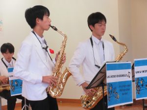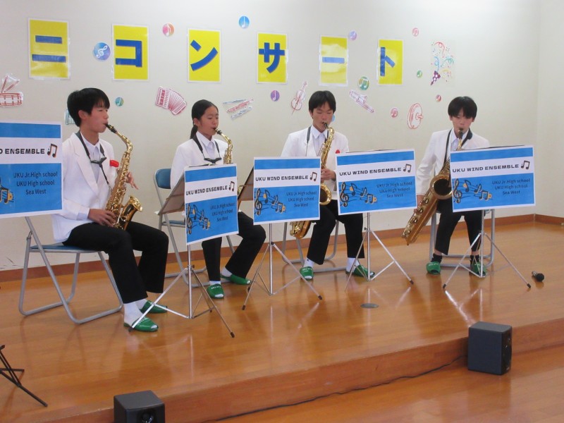 ★初めの演奏は、宇久中学校吹奏学部のみなさん。4名の息の合ったサックス4重奏。