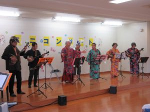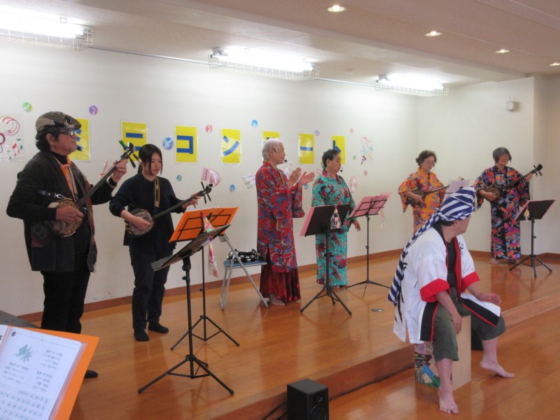 ★次の演奏は、三線グループ結結のみなさん。明るく、元気な歌声!