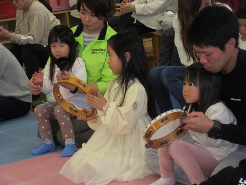 カスタネット、タンバリンで参加できるコーナーで楽しみました♪