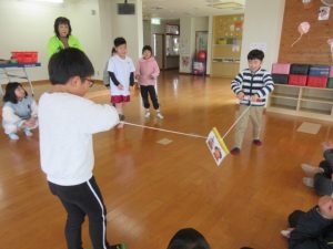 ★2つめのゲームは、真ん中のお雛様に早くたどりつくように、持ち手をクルクル