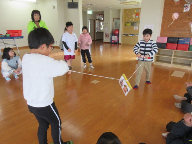 回してひもを巻きながら進みます。みんな必死でしたね~\^o^/