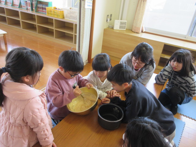 ホットケーキミックス・たまご・牛乳を入れて…かき混ぜて炊飯器へセット!!