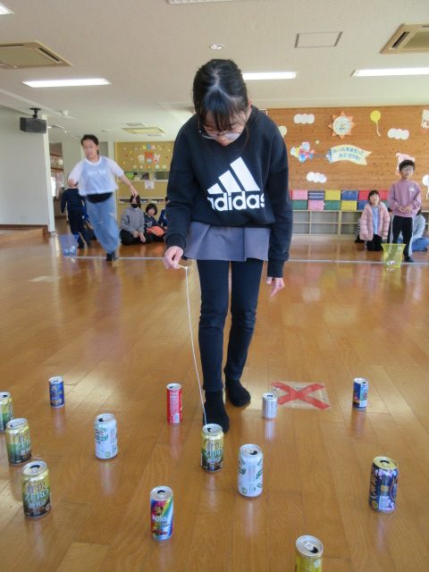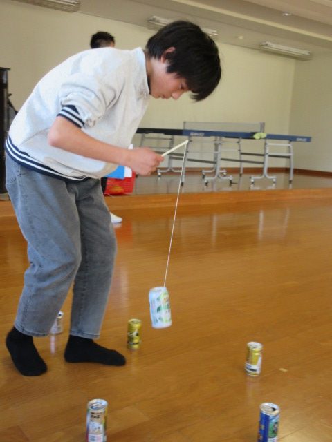 「空き缶釣り」と「ジャンケンバトル」をして遊びました。