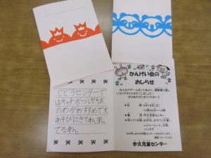 それから、新1年生・転入生のお友だちへの「歓迎会案内状作り」。