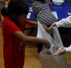 シートに50個ずつ乗せて、袋へ入れる作業をしました。