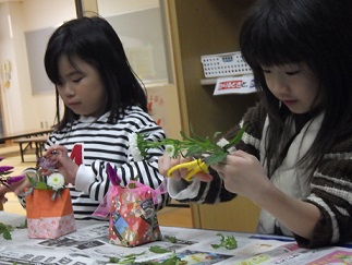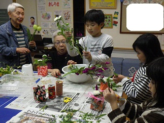 ボランティアセンターより活動いただいている瀬尾様による「生け花体験」も回を重ねるごとに、こどもたちの手つきもお花にふれることに慣れてきているようです。