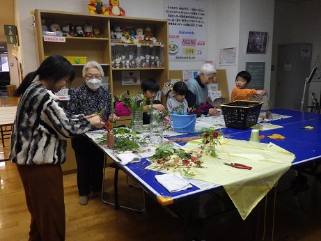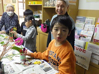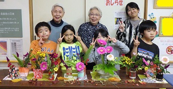 今年最後になるだろうから…と、こどもたちへ「生け花体験」を提供していただきました。