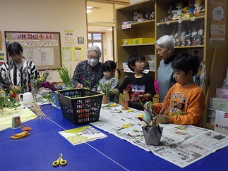今年最後になるだろうから…と、こどもたちへ「生け花体験」を提供していただきました。