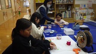 四季あれこれ ひなまつり企画「ヘアゴム作り」を楽しみました。