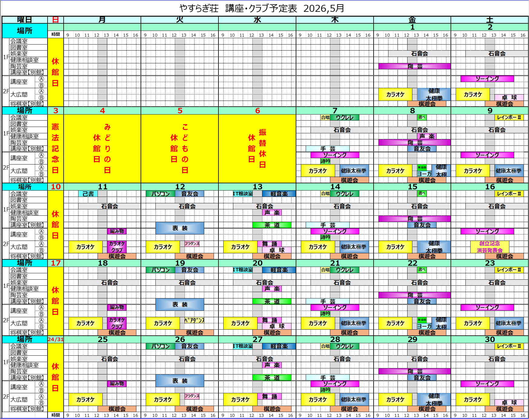講座クラブ予定表 令和8年5月分