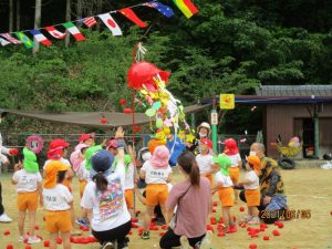 最初は、年長児が月二回太鼓指導に来てくださる森田先生とリズムう打ちやパプリカの太鼓を披露しました。かけっこや親子競技、障害物、2歳児から5歳児までのバトンリレーなど盛りだくさんの競技をしました。4・5歳児だけのリレーは、スピードや躍動感いっぱいでした。体育教室のいむら先生に指導を受け、年長児だけの組体操をしました。全員が力を合わせ、素晴らしいものになりました。