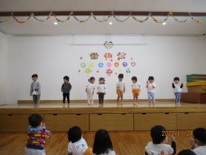 クラスの出し物では、うたや手遊び、発表会で頑張りたいことなどの発表があり、みんなで楽しいひとときを過ごすことができました。