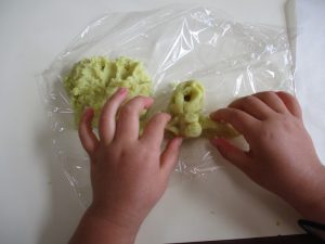 その後は、お部屋で靴下を使ってのお手玉作りを楽しみました・・・