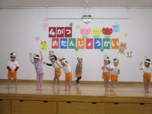 小さいクラスは、どうぶつのお面を付けて、可愛く踊ってくれました~