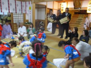 園内では、小さいお友だちが、おくんちごっこをしました~!