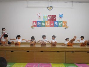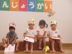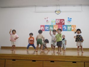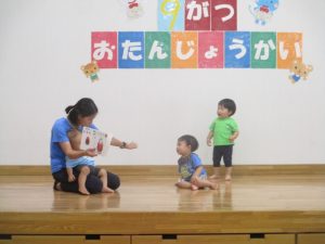 大きいクラスはバランス遊びや歌を披露しましたよ。