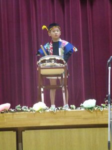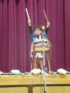年中、年長児がケセラセラの曲で太鼓を披露しました。
