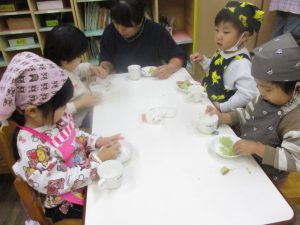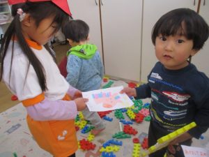 年長、年中児さんが遊戯やふれあい遊びを楽しんできました。