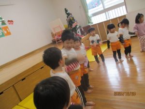 踊ったり、あわてんぼうのサンタクロースでは楽器を鳴らしながらクリスマス気分を楽しみました。