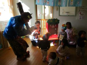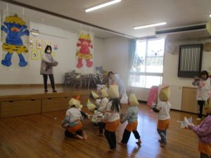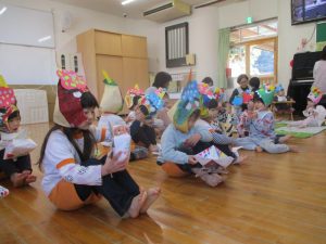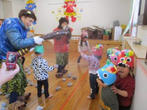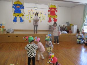 ホールに集まって節分についての話を聞いたり、クイズをしました。