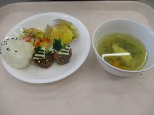 給食の先生もおにぎりやかわいい鬼のミートボールを作ってくれ